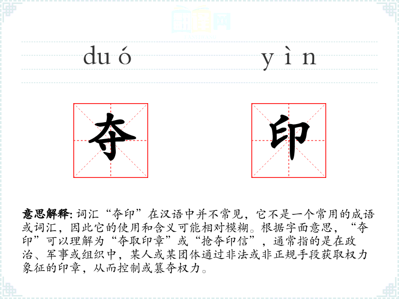 "夺印"的意思解释、夺印是什么意思由翻译网汉语词典查词提供。