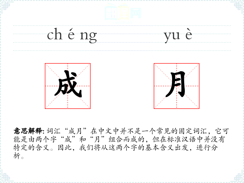 词汇“成月”在中文中并不是一个常见的固定词汇,它可能是由两个字“成”和“月”组合而成的,但在标准汉语中并没有特定的含义。因此,我们将从这两个字的基本含义出发,进行分析。