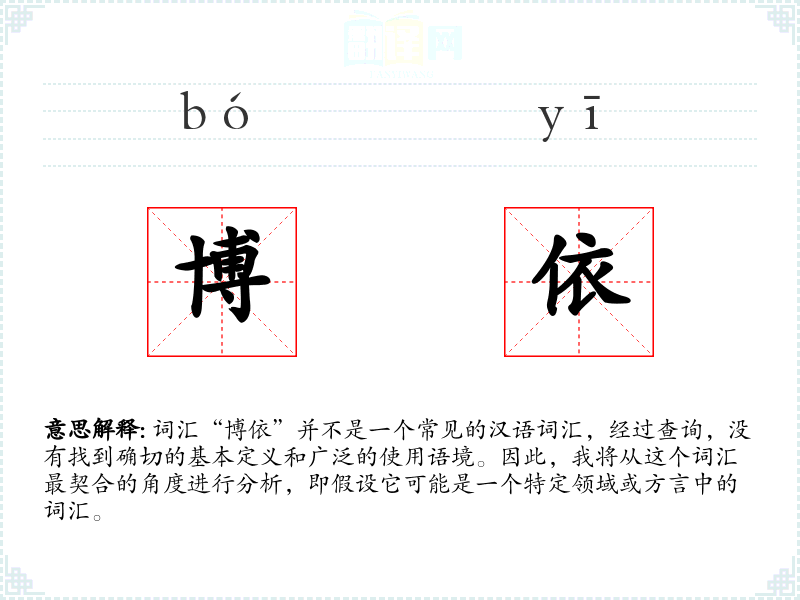 词汇“博依”并不是一个常见的汉语词汇,经过查询,没有找到确切的基本定义和广泛的使用语境。因此,我将从这个词汇最契合的角度进行分析,即假设它可能是一个特定领域或方言中的词汇。