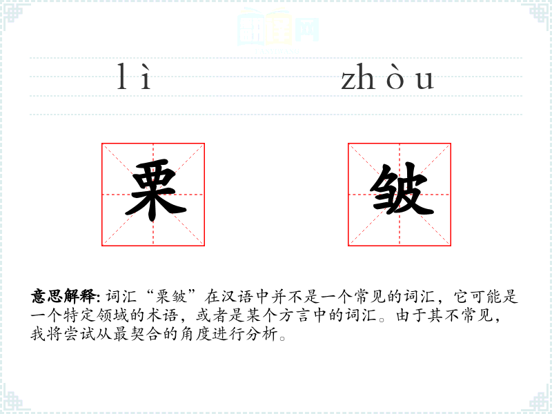 词汇“栗皱”在汉语中并不是一个常见的词汇,它可能是一个特定领域的术语,或者是某个方言中的词汇。由于其不常见,我将尝试从最契合的角度进行分析。
