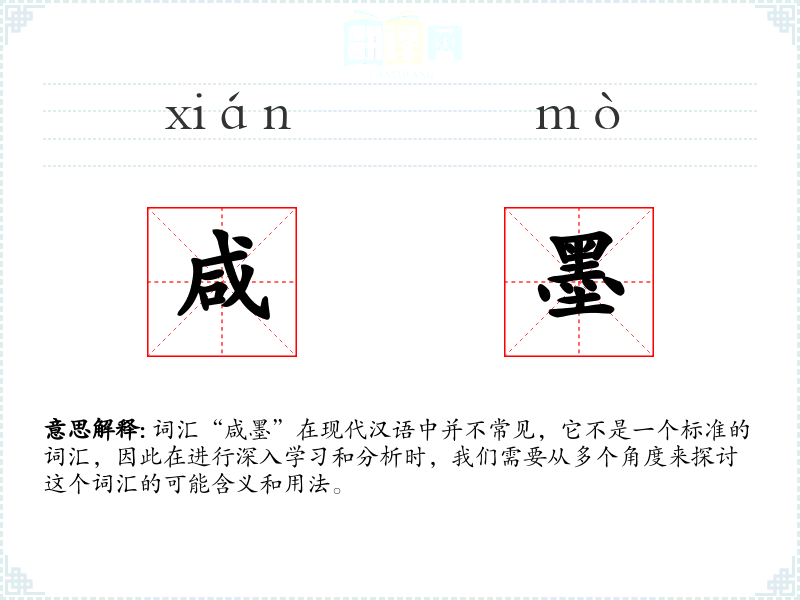 词汇“咸墨”在现代汉语中并不常见,它不是一个标准的词汇,因此在进行深入学习和分析时,我们需要从多个角度来探讨这个词汇的可能含义和用法。