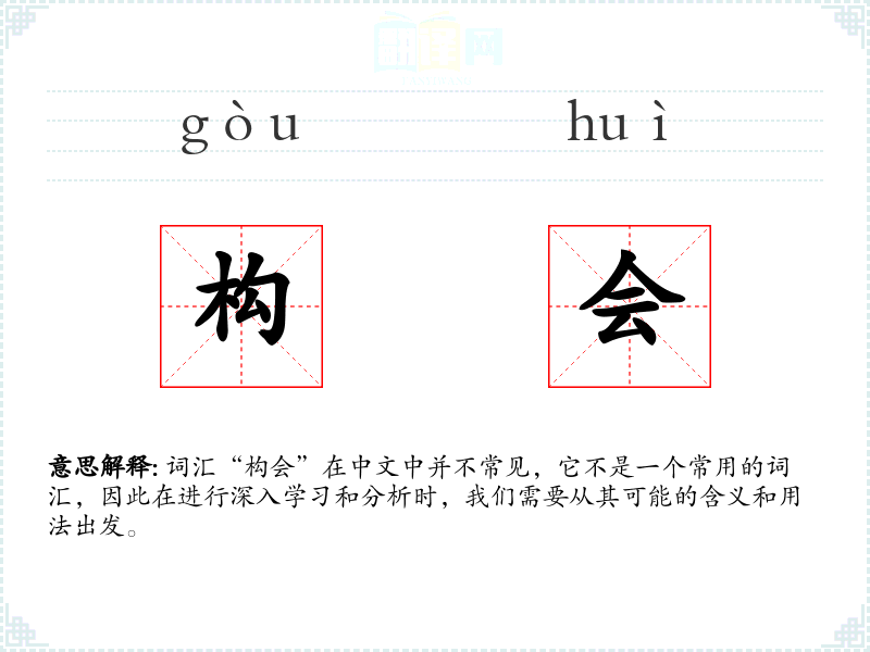 词汇“构会”在中文中并不常见,它不是一个常用的词汇,因此在进行深入学*和分析时,我们需要从其可能的含义和用法出发。
