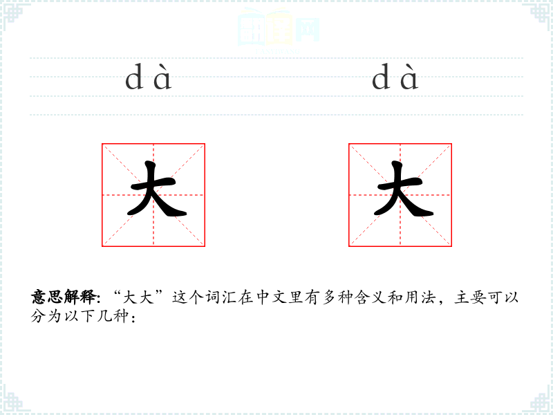 - 网络用语:在网络语境中,尤其是社交媒体上,“大大”常用来称呼某方面非常厉害或有影响力的人,带有一定的崇拜和尊敬意味。
