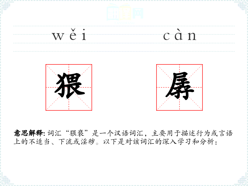 词汇“猥亵”是一个汉语词汇,主要用于描述行为或言语上的不适当、下流或淫秽。以下是对该词汇的深入学习和分析: