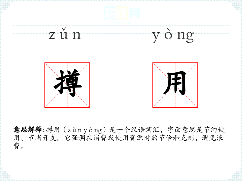 - 口语:在日常对话中,撙用可能被用来建议或评价某人的消费*惯,如“你应该撙用一些,不要总是买不必要的物品。”