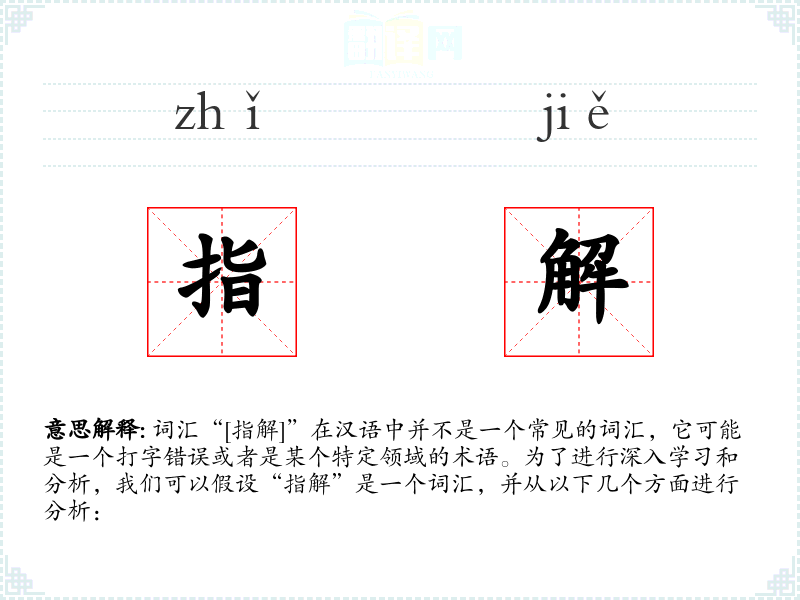 通过对“指解”的分析,我们可以看到它在强调详细解释和说明方面的作用。在语言学习和表达中,掌握这样的词汇有助于更准确地传达复杂的思想和概念。