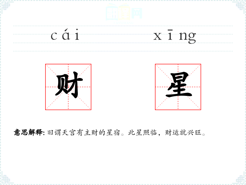 旧谓天宫有主财的星宿。此星照临,财运就兴旺。