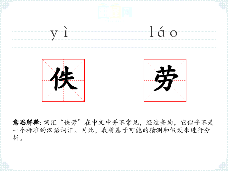 词汇“佚劳”在中文中并不常见,经过查询,它似乎不是一个标准的汉语词汇。因此,我将基于可能的猜测和假设来进行分析。