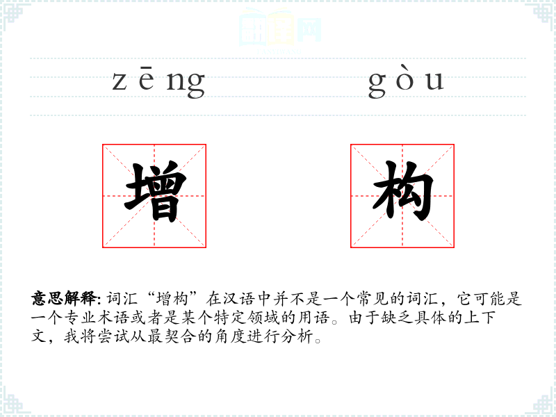 词汇“增构”在汉语中并不是一个常见的词汇,它可能是一个专业术语或者是某个特定领域的用语。由于缺乏具体的上下文,我将尝试从最契合的角度进行分析。