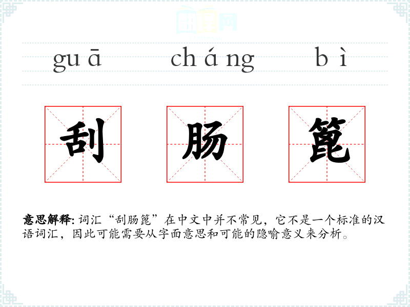 词汇“刮肠篦”在中文中并不常见,它不是一个标准的汉语词汇,因此可能需要从字面意思和可能的隐喻意义来分析。