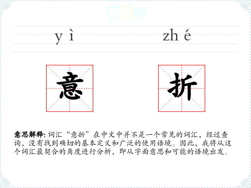 词汇“意折”在中文中并不是一个常见的词汇,经过查询,没有找到确切的基本定义和广泛的使用语境。因此,我将从这个词汇最契合的角度进行分析,即从字面意思和可能的语境出发。