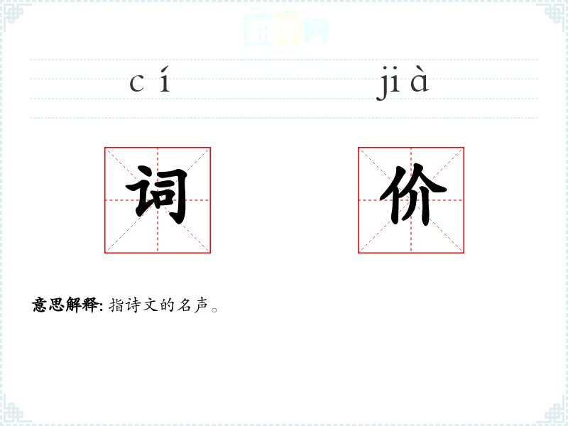 词价的分字解释