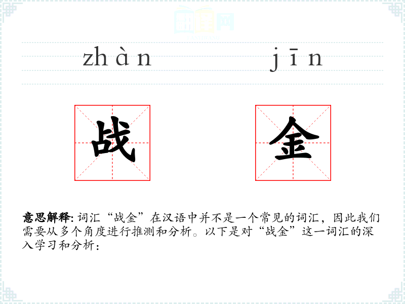 词汇“战金”在汉语中并不是一个常见的词汇,因此我们需要从多个角度进行推测和分析。以下是对“战金”这一词汇的深入学习和分析: