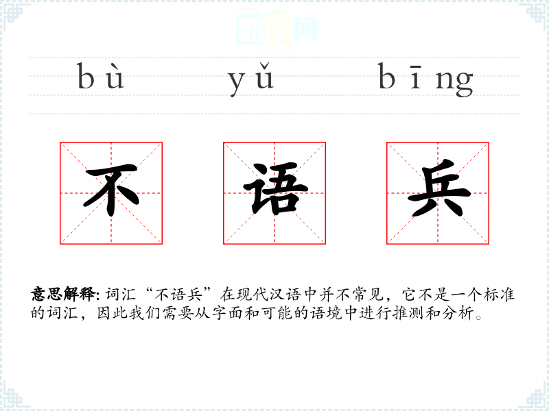 词汇“不语兵”在现代汉语中并不常见,它不是一个标准的词汇,因此我们需要从字面和可能的语境中进行推测和分析。