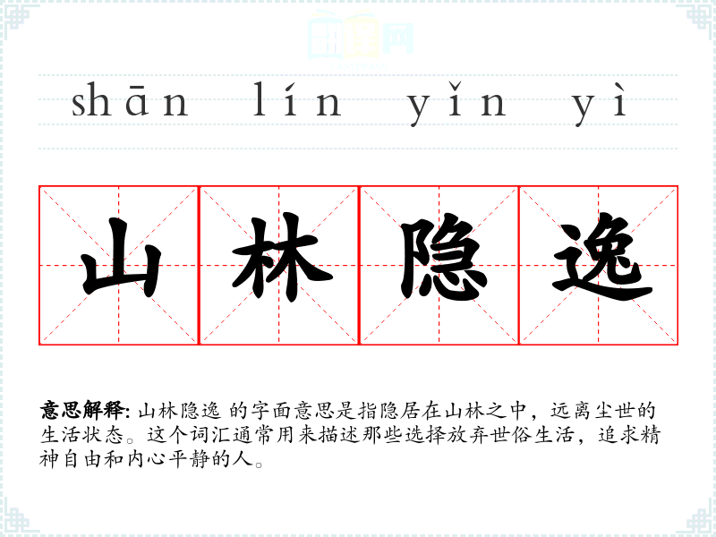 “山林隐逸”不仅是一个词汇,更是一种生活哲学,它鼓励人们追求内心的平静和与自然的和谐。在快节奏的现代生活中,理解和应用这个词汇,可以帮助我们找到内心的宁静和生活的平衡。