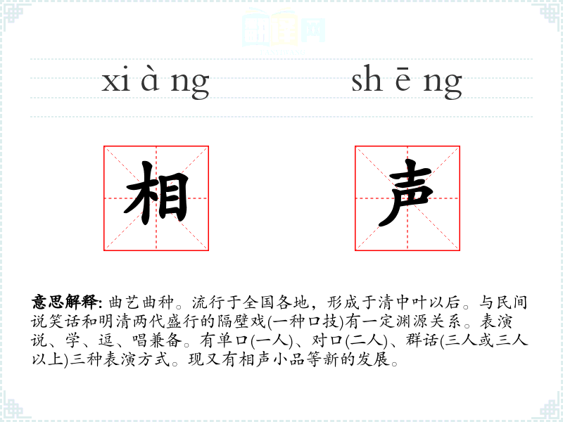 "相声"的意思解释、相声是什么意思由翻译网汉语词典查词提供。