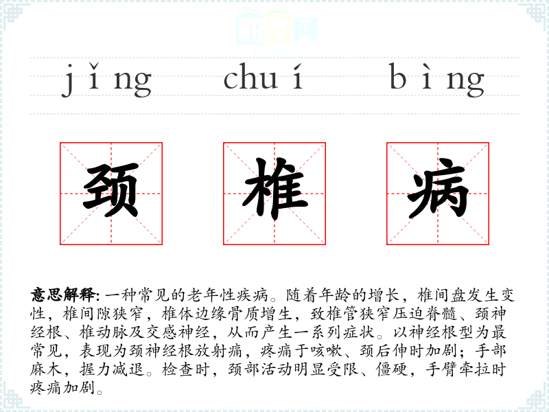 "颈椎病"的意思解释、颈椎病是什么意思由翻译网汉语词典查词提供。
