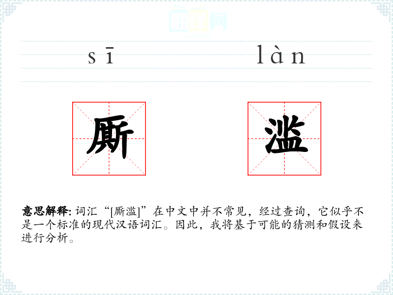 词汇“[厮滥]”在中文中并不常见,经过查询,它似乎不是一个标准的现代汉语词汇。因此,我将基于可能的猜测和假设来进行分析。