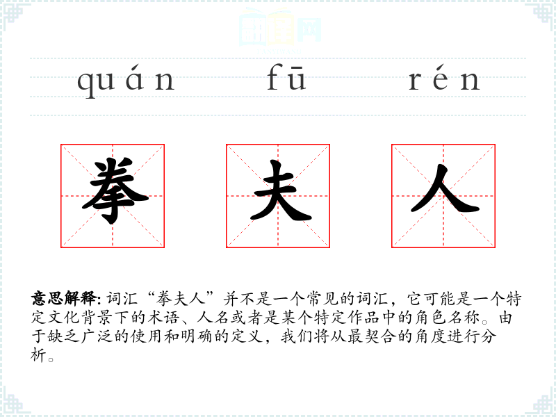 "拳夫人"的意思解释、拳夫人是什么意思由翻译网汉语词典查词提供。