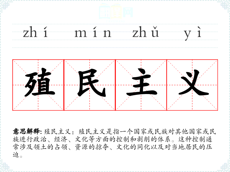- 同义词:帝国主义、占领、统治、剥削