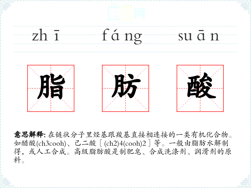 在链状分子里烃基跟羧基直接相连接的一类有机化合物。如醋酸(ch3cooh)、己二酸[(ch2)4(cooh)2]等。一般由脂肪水解制得,或人工合成。高级脂肪酸是制肥皂、合成洗涤剂、润滑剂的原料。