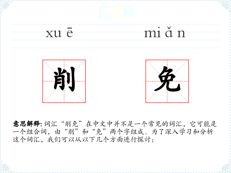 词汇“削免”在中文中并不是一个常见的词汇,它可能是一个组合词,由“削”和“免”两个字组成。为了深入学习和分析这个词汇,我们可以从以下几个方面进行探讨: