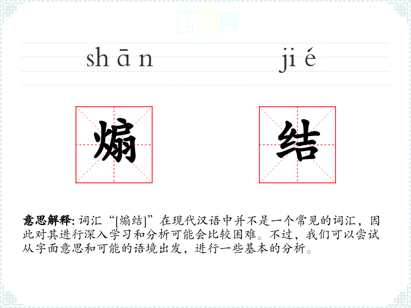 词汇“[煽结]”在现代汉语中并不是一个常见的词汇,因此对其进行深入学*和分析可能会比较困难。不过,我们可以尝试从字面意思和可能的语境出发,进行一些基本的分析。