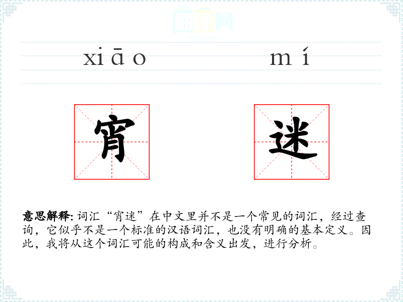 词汇“宵迷”在中文里并不是一个常见的词汇,经过查询,它似乎不是一个标准的汉语词汇,也没有明确的基本定义。因此,我将从这个词汇可能的构成和含义出发,进行分析。