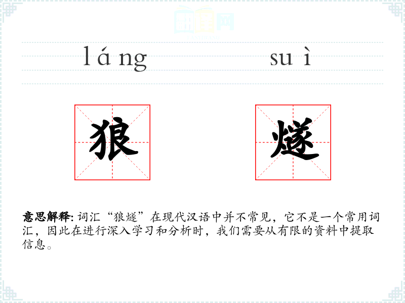 词汇“狼燧”在现代汉语中并不常见,它不是一个常用词汇,因此在进行深入学*和分析时,我们需要从有限的资料中提取信息。
