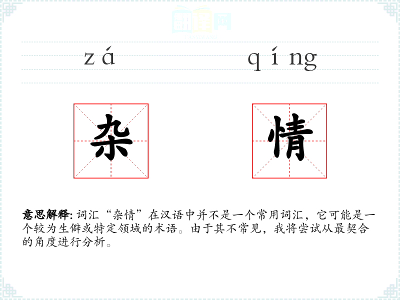 词汇“杂情”在汉语中并不是一个常用词汇,它可能是一个较为生僻或特定领域的术语。由于其不常见,我将尝试从最契合的角度进行分析。