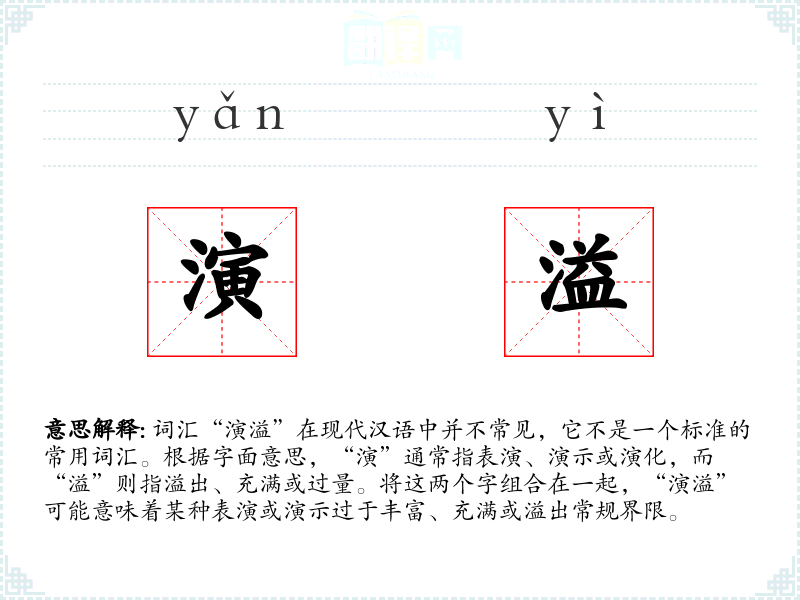 “演溢”可能被理解为某种表演或演示超出了常规的界限,充满了情感或内容的丰富性,以至于溢出或超出预期。