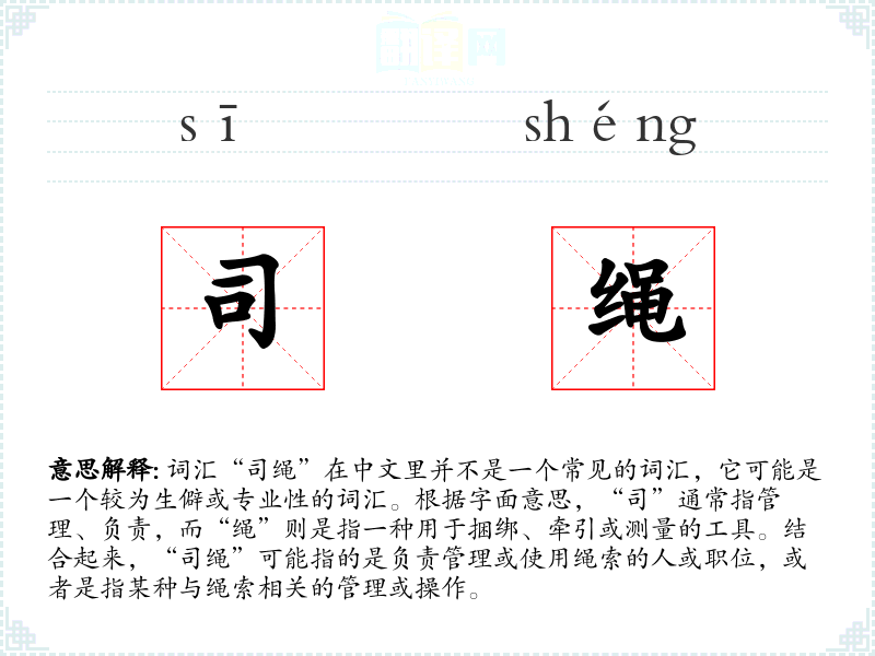 - 理解:“司绳”是一个具有特定职业含义的词汇,虽然在日常语言中不常见,但在某些专业领域中具有重要意义。
