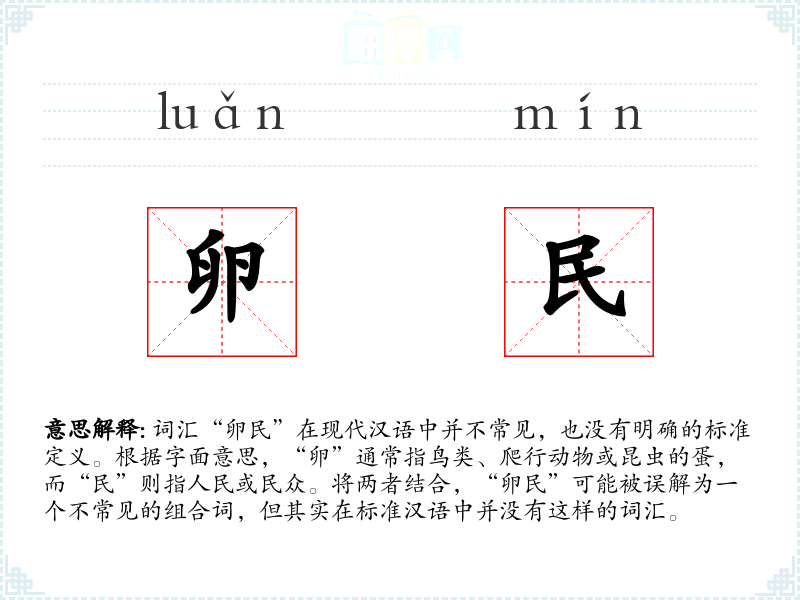 词源与演变: 由于“卵民”不是一个标准的词汇,因此没有相关的词源或历史演变信息。