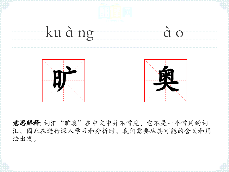 词汇“旷奥”在中文中并不常见,它不是一个常用的词汇,因此在进行深入学习和分析时,我们需要从其可能的含义和用法出发。