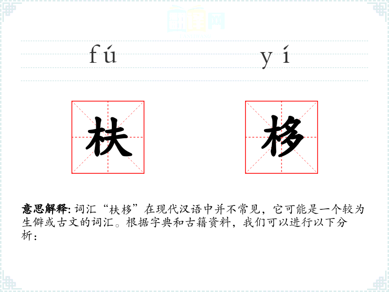“枎栘”作为一个古文词汇,虽然在现代汉语中不常用,但它反映了汉语丰富的历史和文化底蕴。在学*古文和了解古代文化时,了解这样的词汇是有益的。