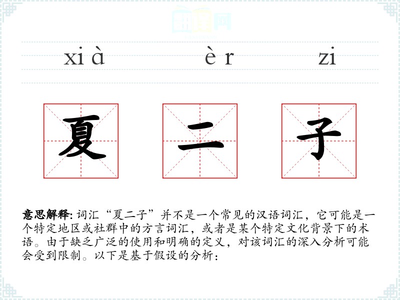 对于“夏二子”这个词汇的理解,需要更多的上下文信息和文化背景知识。在语言学习和表达中,了解特定社群或地区的方言和术语是非常重要的,这有助于更深入地理解语言的多样性和丰富性。