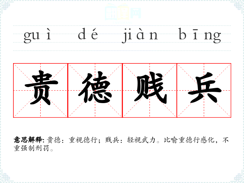 贵德:重视德行;贱兵:轻视武力。比喻重德行感化,不重强制刑罚。