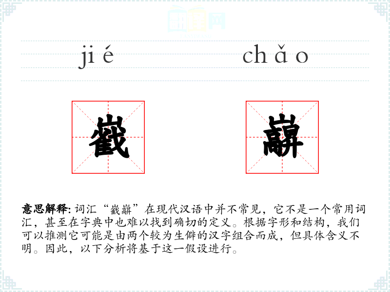 词汇“巀巐”在现代汉语中并不常见,它不是一个常用词汇,甚至在字典中也难以找到确切的定义。根据字形和结构,我们可以推测它可能是由两个较为生僻的汉字组合而成,但具体含义不明。因此,以下分析将基于这一假设进行。