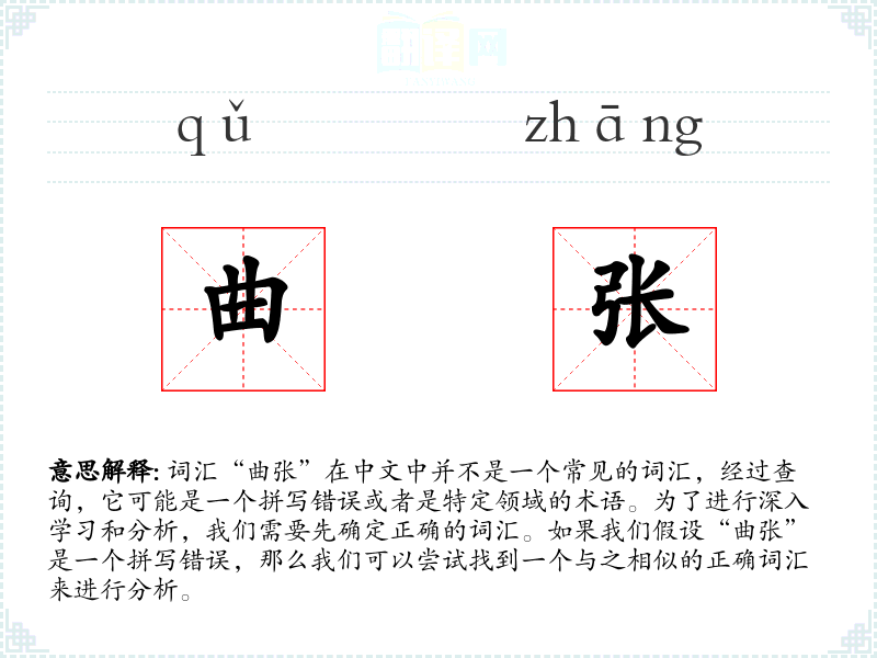 词汇“曲张”在中文中并不是一个常见的词汇,经过查询,它可能是一个拼写错误或者是特定领域的术语。为了进行深入学*和分析,我们需要先确定正确的词汇。如果我们假设“曲张”是一个拼写错误,那么我们可以尝试找到一个与之相似的正确词汇来进行分析。