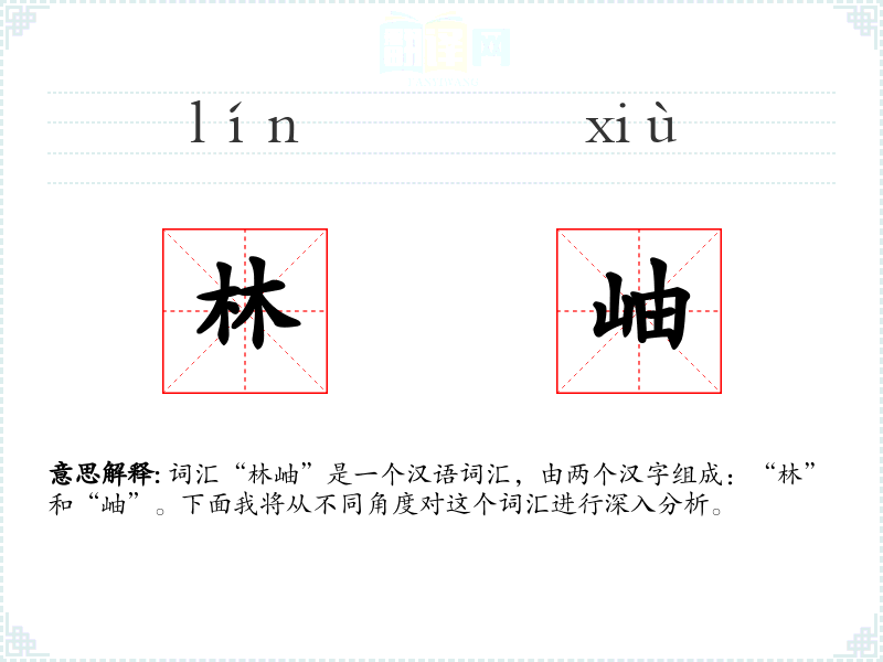 - 词源:“林”和“岫”都是古代汉语词汇,历史悠久。