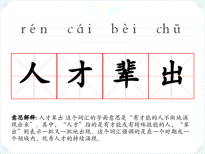 - 英才辈出:强调的是杰出人才的涌现。