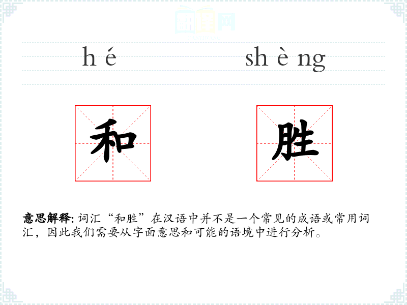 词汇“和胜”在汉语中并不是一个常见的成语或常用词汇,因此我们需要从字面意思和可能的语境中进行分析。