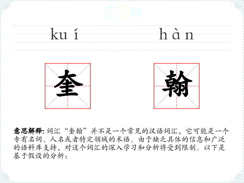 - 由于“奎翰”不是一个标准词汇,无法提供确切的同义词和反义词。