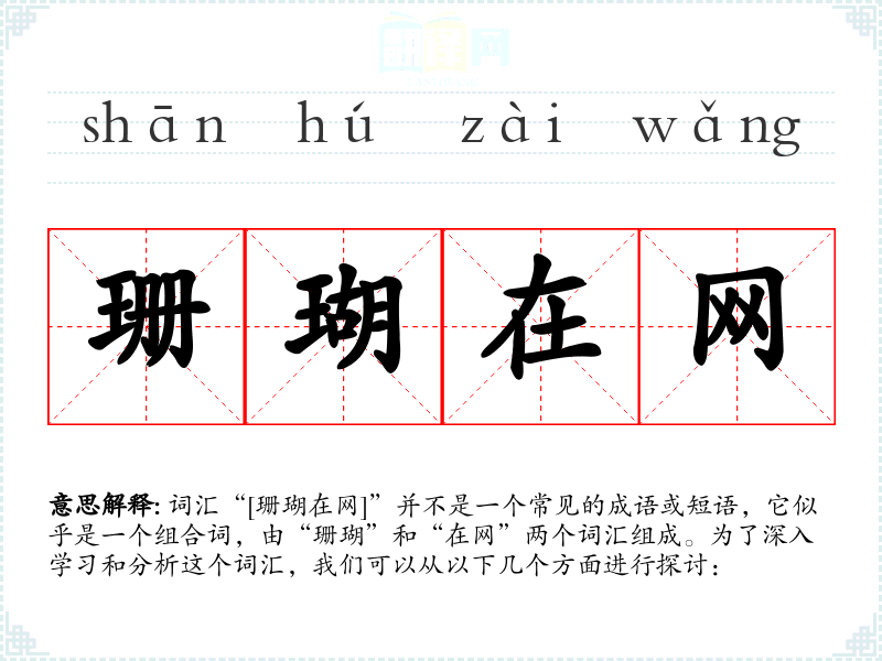 词汇“[珊瑚在网]”并不是一个常见的成语或短语,它似乎是一个组合词,由“珊瑚”和“在网”两个词汇组成。为了深入学习和分析这个词汇,我们可以从以下几个方面进行探讨: