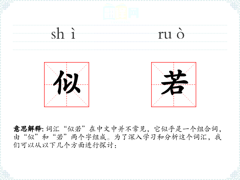 词汇“似若”在中文中并不常见,它似乎是一个组合词,由“似”和“若”两个字组成。为了深入学习和分析这个词汇,我们可以从以下几个方面进行探讨:
