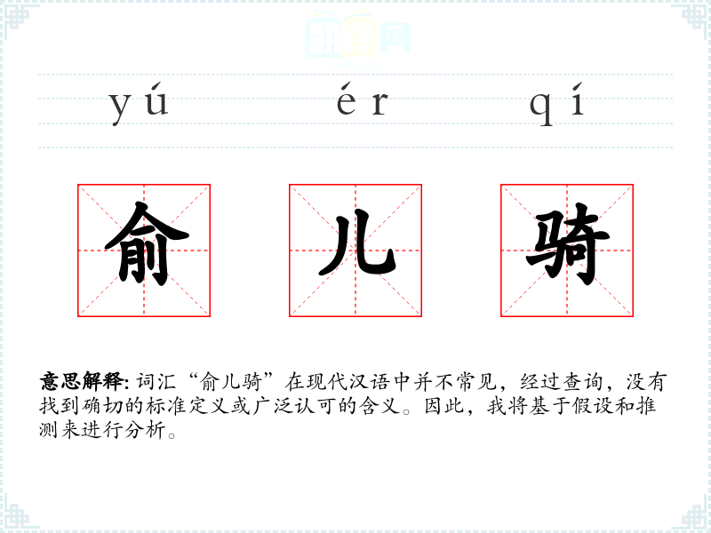 由于“俞儿骑”不是一个标准词汇,我们可以尝试分解其字面意思: