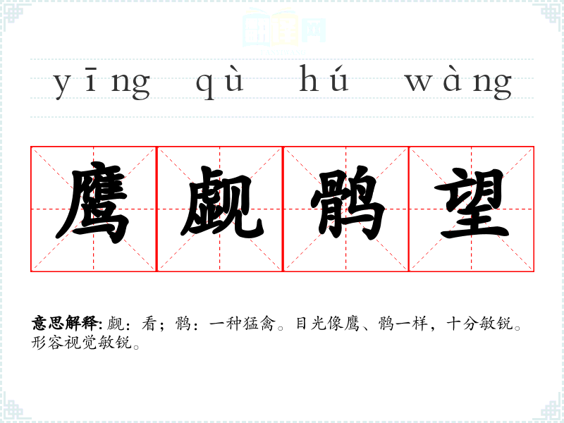 觑:看;鹘:一种猛禽。目光像鹰、鹘一样,十分敏锐。形容视觉敏锐。