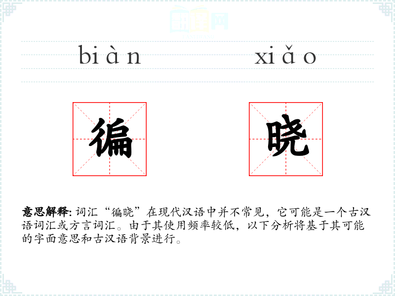 词汇“徧晓”在现代汉语中并不常见,它可能是一个古汉语词汇或方言词汇。由于其使用频率较低,以下分析将基于其可能的字面意思和古汉语背景进行。