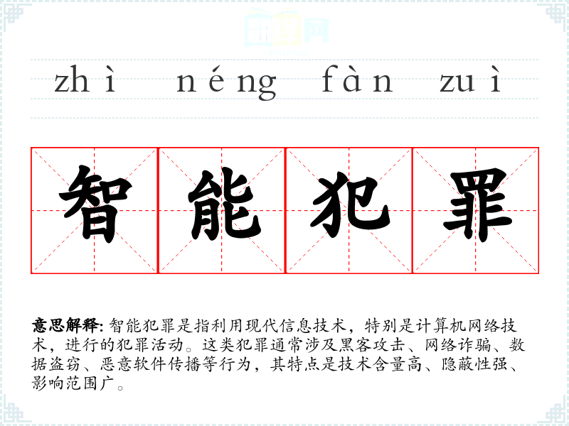 智能犯罪是一个与现代信息技术紧密相关的概念,它不仅反映了技术的发展,也揭示了社会面临的挑战。了解和掌握这一词汇,对于提高个人的网络安全意识和应对能力具有重要意义。