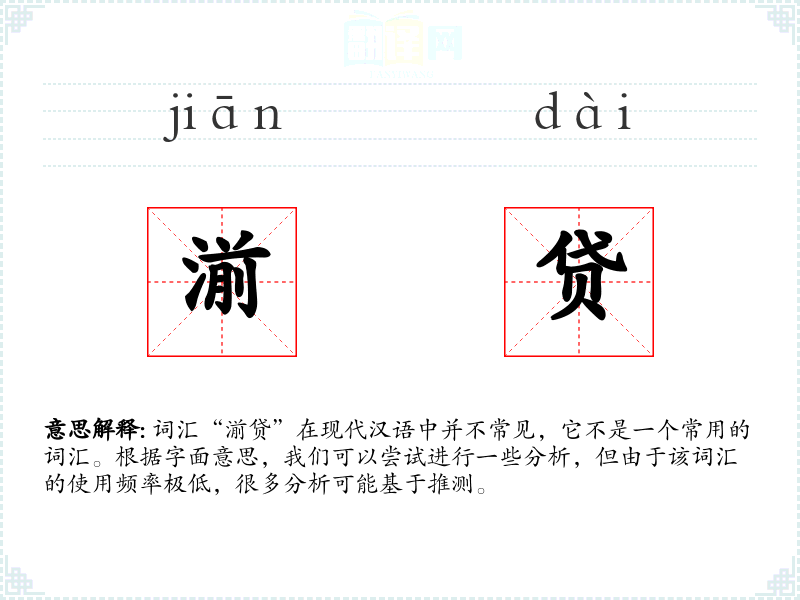 词汇“湔贷”在现代汉语中并不常见,它不是一个常用的词汇。根据字面意思,我们可以尝试进行一些分析,但由于该词汇的使用频率极低,很多分析可能基于推测。